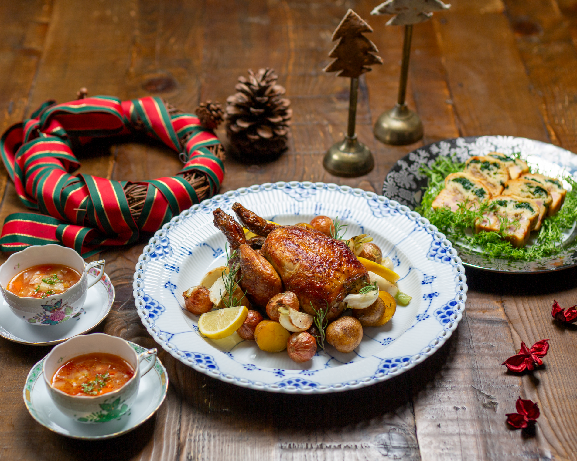 東京恵比寿にある「ROTISSERIE★BLUE」特製ロティサリーチキン(国産雛鳥のロースト)、西村シェフ特製のベーコンときのこのケークサレ&ミネストローネ。「家庭で一流の味を聖夜に」をテーマに、厳選した国産食材とフランス伝統技法が織りなす上質なハーモニーをお楽しみいただけます。ご自宅で気軽に味わえる“特別なクリスマスディナー”として、贈り物にも最適な限定セットです。